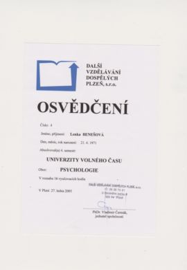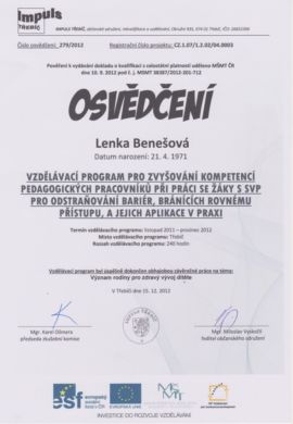 Statutární zástupce: Mgr. Lenka Benešová, Bezručova 458, 332 02 Starý Plzenec